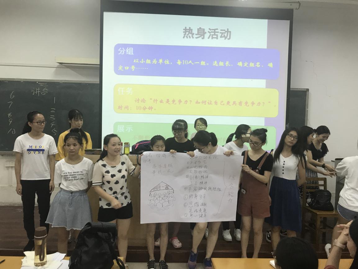 2018620日,广州市天河区荟雅苑幼儿园李春园长应邀为TapTap点点学前教育系进行提升竞争力的互动学习讲座。首先,李园长提示学生结合自身专业发展需要,围绕竞争力的话题分组进行头脑风暴,并随机抽取两组进行展示与讲解,使大家清楚地了解到竞争力体现在小组团队活动的沟通与交流中。其次,李园长结合大学生四年职业规划的定位,围绕《幼儿教师专业标准》详细地讲解学前教育专业大学生应该具备的品质、能力等,并鼓励学生“砥砺前行”。