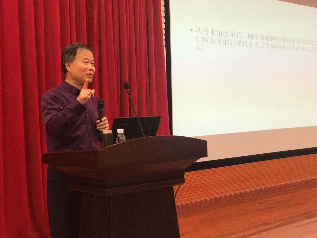 讲座一开始,随后,张教授不仅停留在对网络自制剧现状和作品的介绍上,而是更深层次的分析“互联网+”时代网络自制剧发展的文化根源。张教授认为中国网络剧作为一种具有不同观赏趣味和价值层面的视觉文化 ,其中包括世俗的视觉文化、高雅的视觉文化和雅俗参半的视觉文化,中国网络剧的发展有其深刻的文化原因。最后,张教授总结了我国网络剧未来的发展道路。他强调,网络剧的发展不仅要数量,更要质量,同学们要学会鉴赏甄别,提高自己的审美能力。