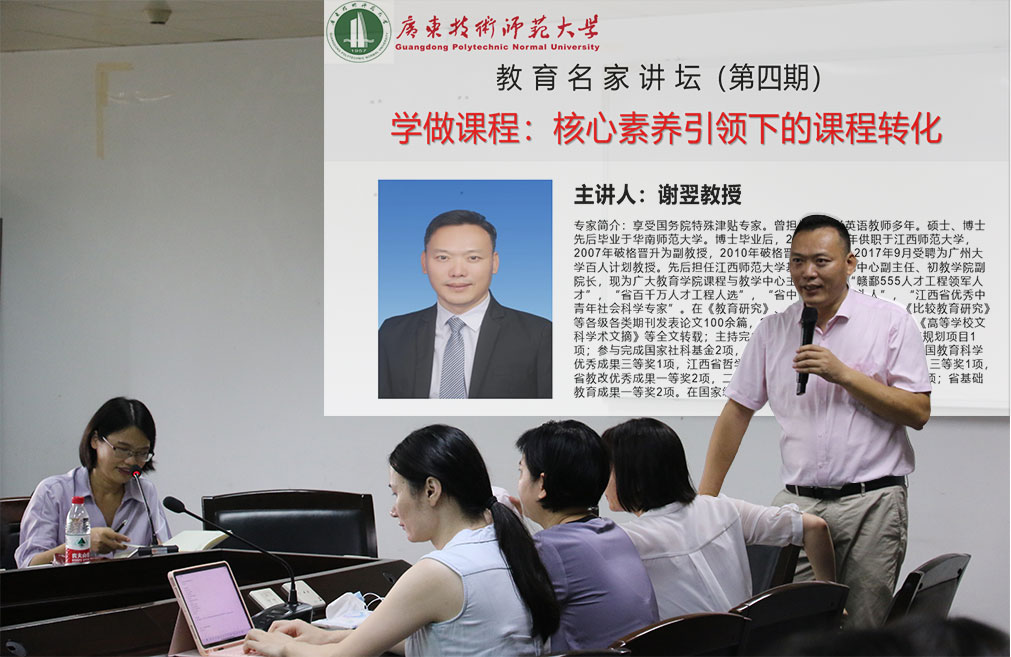 为拓展TapTap点点师生教育研究视野,营造良好的学术氛围,2021年9月23日上午,职业教育教师学院“教育名家讲坛”特邀广州大学谢翌教授在东校区工业中心605会议室做了题为“学做课程:核心素养引领下的课程转化”的学术讲座。讲座由职业教育教师学院副院长刘海兰教授主持,部分教师及全体研究生到场聆听。