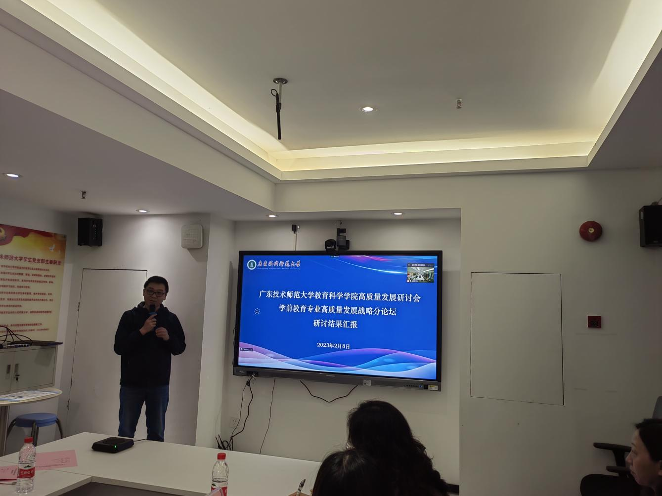 随后各系主任汇报各个专业未来的高质量发展思路。学前教育系主任黄茂勇提出了寻找差异化的需求、充分挖掘校友资源、建立“导师制”和“导生制”、优化教师团队激励机制等行动策略。应用心理学系主任张玲燕提出了师生主体化、专业内生发展环加专业外部生机环联动式发展的总体发展思路,提出了错位式发展理念、产品思维模式、科研发力、以赛促学等发展策略。教育技术系主任赵玉提出了教学为主体、科研为引擎、比赛为左翼、服务为右翼的一体两翼策略,重点突出了教育产品数字化和科创教育下乡服务品牌的建立和打造。数字媒体技术系主任伍国华提出了要加强国培、省培项目的申报,服务河源电子商务和数字媒体职业教育,对接文化创意产品设计、虚拟漫游等文商旅融合产品的设计与开发。