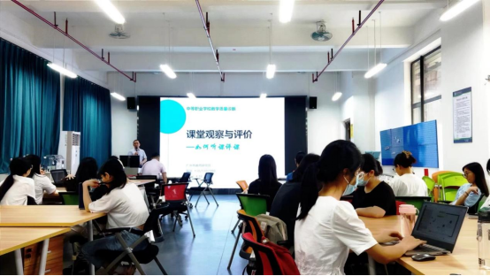 活动第二项议程为陈凯所长围绕目前师生关心的中等职业学校教学质量诊断的问题,以“课堂观察与评价”为题深入浅出地进行了分享。应国家对职业教育提出的高质量发展的要求,陈凯所长搭建了课堂的观察与评价的构架,以听课评课为切入点深入分析了课堂观摩、评价、交流与总结等是如何促进教师个人教学水平的提高的。陈凯所长从自身经验出发,带领同学们了解职业教育高水平发展的需求,并对学生们提出了未来成为职教教师、致力发展职业教育的殷切希望。