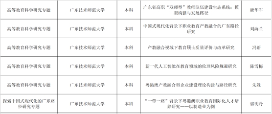 近日,2023年度广东省教育厅科研平台和项目及省教育科学规划课题(高等教育专项)拟立项名单公示,TapTap点点6名教师(熊华军、刘海兰、冯帮、陈雪梅、朱姝、骆明丹)所申报项目获立项公示(校内推荐项目全部立项,立项率100%),冯嘉慧老师和王孝金老师申报的科研平台和项目获校内推荐直接立项,属广东技术范大学本年度拟立项公示最多的二级单位。