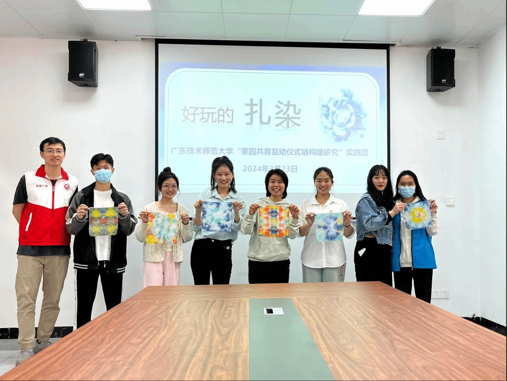 “家园共育互动仪式链构建”实践团负责人、中共预备党员邓舜君依托广东省科技创新战略专项资金(大学生科技创新培育)项目《情感赋能:家园共育互动仪式链的构建机制与提升路径研究》,带领团队主动作为,与白云区黄石街办事处达成结对,共同策划了以非遗扎染为主题的亲子活动,精准对接家庭教育需求,推进幼儿园、家庭与社区协同育人,为附近居民提供更精准、更贴心的服务。