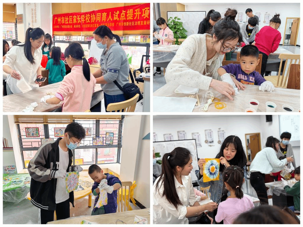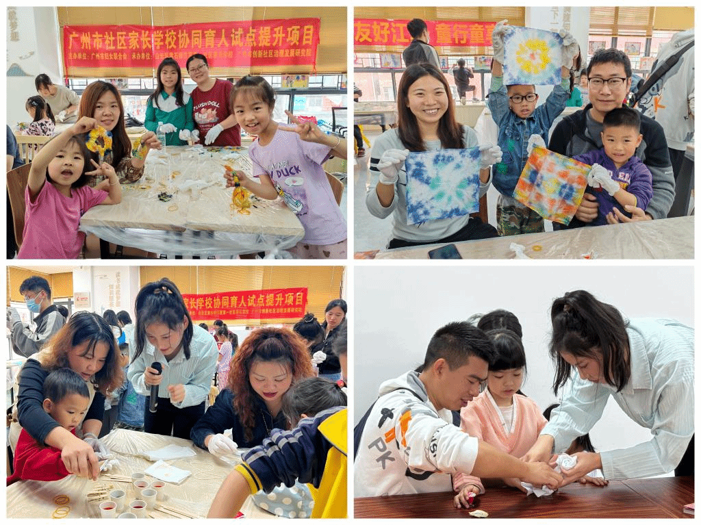 近日,“家园共育互动仪式链构建”实践团与白云区黄石街办事处达成结对,并在2024年3月23日于江夏第一社区党群服务中心展开了一场以非遗扎染为主题的亲子活动,旨在使更多家庭了解中华民族的优秀历史文化,并在活动中增进亲子情感。