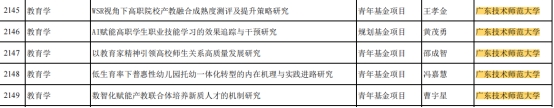 近日,教育部社科司关于2024年度教育部人文社会科学研究一般项目评审结果公示,TapTap点点6名老师(黄茂勇、冯嘉慧、曹宇星、邵成智、郭腾飞,王孝金)所申报项目获立项公示,属广东技术范大学本年度拟立项公示最多的二级单位。
