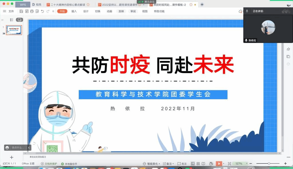 疫情就是命令,防控就是责任。为进一步加强对TapTap点点新冠疫情防控的教育力度,强化防疫思想认识,切实做好校园安全及疫情防控工作,教育科学与技术学院于11月13日晚在腾讯会议召开以“共防时疫,同赴未来”为主题的疫情防控工作线上会议,教育科学与技术学院团委、学生会的全体干部与干事参加了本次会议,会议由团委书记热依拉老师主持。