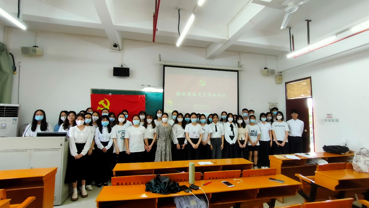 会议严格按照程序进行。首先各支部发展对象依次上台发言,分别从对党的认识、入党动机、个人情况等方面展开自我阐述。各发展对象表示,申请入党以来,对党的认识不断加深,同时表明了自己加入党组织的坚定信念和决心。随后,与会党员围绕中国共青团成立100周年、党的十九届六中全会等内容分别对发展对象进行提问。接下来,与会人员就发展对象是否符合预备党员的条件进行审查和讨论,各党支部采用无记名差额投票的方式进行表决,全体党员一致同意接收曾海娟等21名发展对象为中共预备党员。最后,全体与会党员进行入党宣誓。