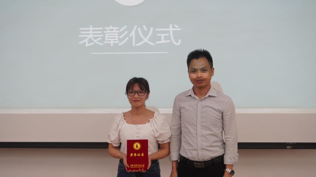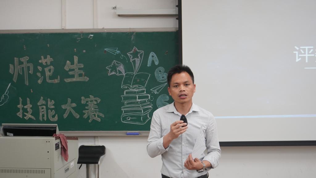 紧接着,学院隆重表彰第八届广东省本科高校师范生技能大赛的获奖者们,由获奖选手周子棋同学发表获奖感言,拉开了本次比赛的帷幕。