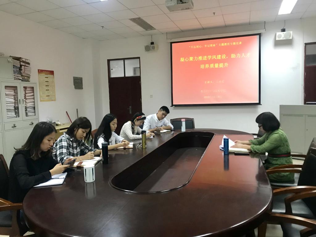 根据学校“不忘初心、牢记使命”主题教育的工作要求,教育科学与技术学院党委副书记吴水爱就学风建设问题展开了专项会议,在前期调研工作的基础上,于11月4日组织了学风建设工作专题座谈会,学院全体辅导员参加了会议。