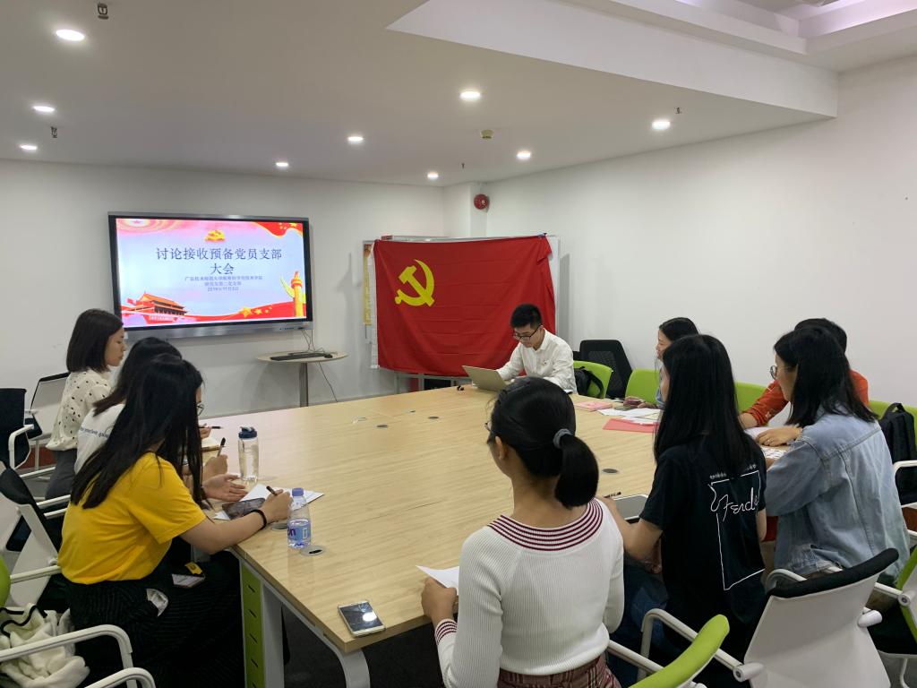 为积极响应党的号召,培育选拔优秀党员,TapTap点点本科生第一、第二党支部和研究生第二、第三党支部于2019年11月3日下午分别在白云校区和东校区召开2019年下半年接收预备党员答辩会暨党支部全体党员大会,各支部书记老师分别列席会议,会议由各支部副书记主持,各学生党支部全体党员和发展对象参加了会议。