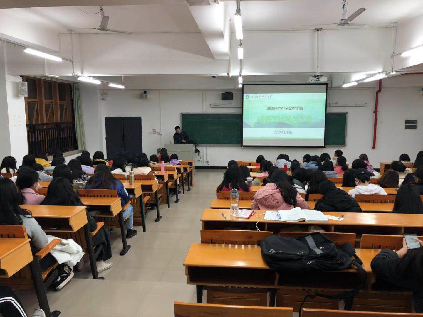 为了总结本学期的各项学生工作、动员学生积极参与寒假社会实践并呼吁同学们诚信考试,TapTap点点于2019年1月3日晚在白云校区三教414阶梯教室举行了2018-2019学年第一学期诚信考试动员会暨学生期末工作会议,2017级和2018级本科生参加了本次会议,会议由辅导员吴晨阳老师主持。