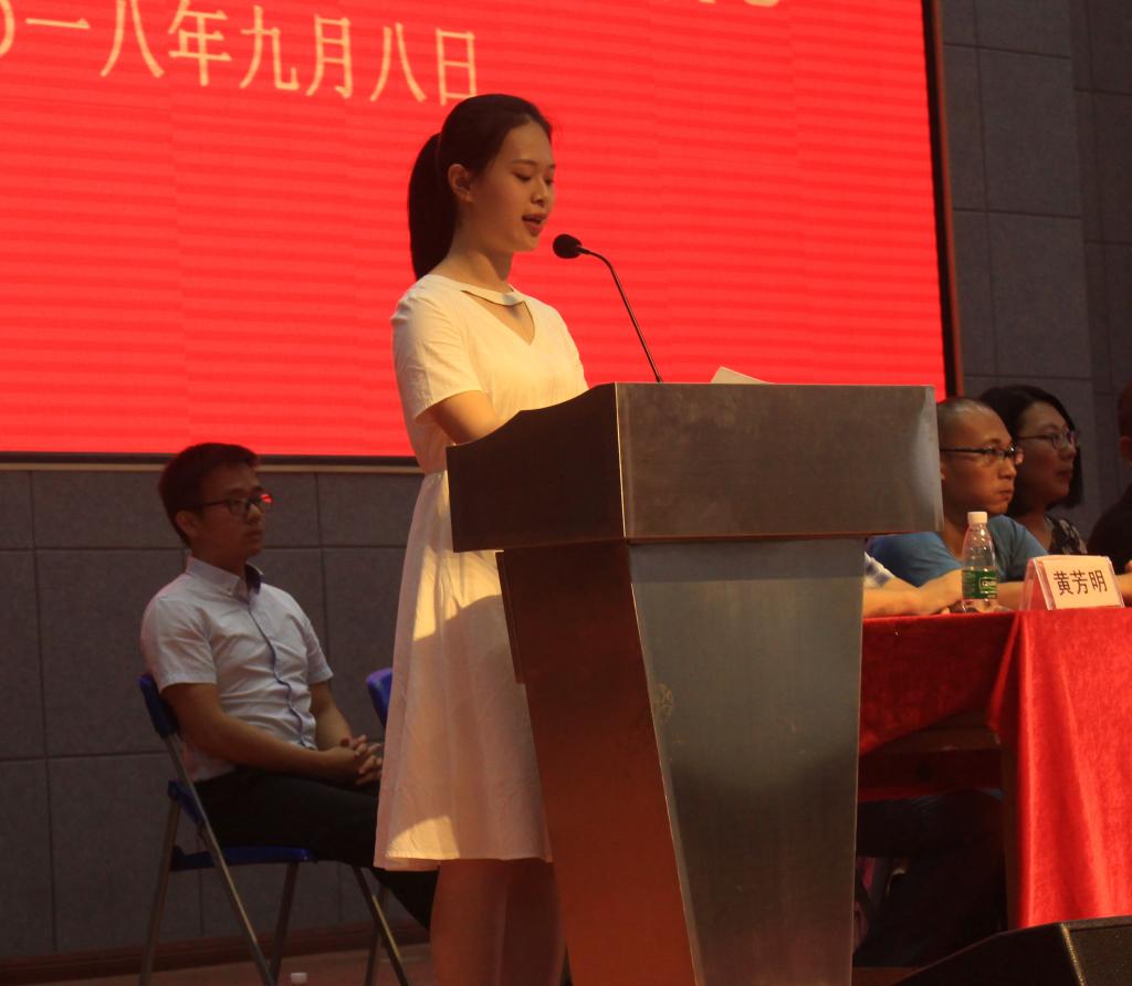 随后老生代表周颖同学代表全体教育科学与技术学院学生发言。她结合个人成长经历,围绕着“怎样更好更快地成为更好的自己”。她认为成长为更好的自己首先要学会承担、学会取舍,在遇困难的时候,学会向师兄师姐、老师寻求帮助。她说,“大学是小小的社会,大学本身就是人学,是让学生学会如何为人。” 正所谓“风之积也不厚,故其负大翼也无力”, 作为TapTap,TapTap点点人,在学好专业知识之余可以多参加一些部门、志愿活动,多积累一些经验。