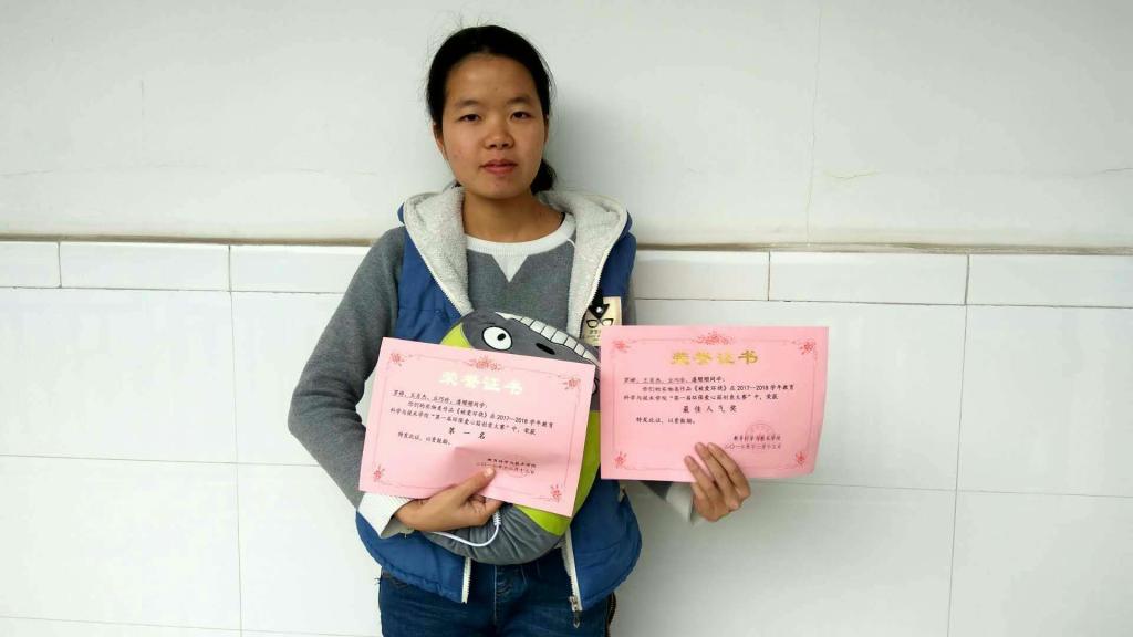 实物类的获奖名单为:16教技师罗婷等人的作品——《被爱环绕》荣获第一名和最佳人气奖,16学前二班玛义努尔等人的《天使和海绵的蜜密》获得第二名,16学前二班张梓晓等人的《让爱飞翔》获得第三名。