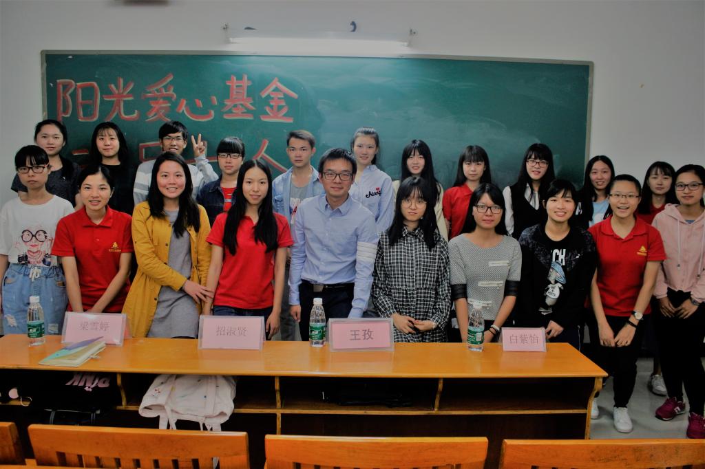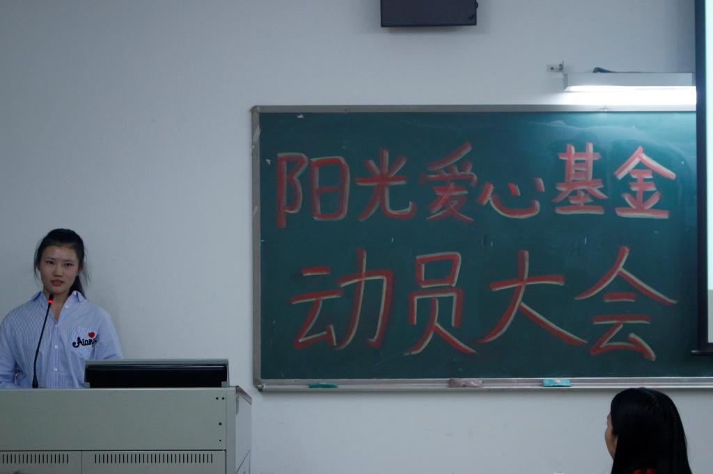 乐善好施、扶贫帮困是中华民族的传统美德;互相帮助、患难扶持是社会倡导的时代新风。为了更好的营造TapTap点点戮力同心、互帮互助的氛围,让爱心基金更好地帮助TapTap点点的贫困生。团总支阳光爱心基金会于10月23日在白云校区二教301举行了以“共享阳光,奉献爱心”为主题的第一届阳光爱心基金动员大会,出席此次会议的嘉宾有团总支书记王孜老师,团总支副书记招淑贤,团总支执行副书记梁雪婷和学生代表白紫怡。