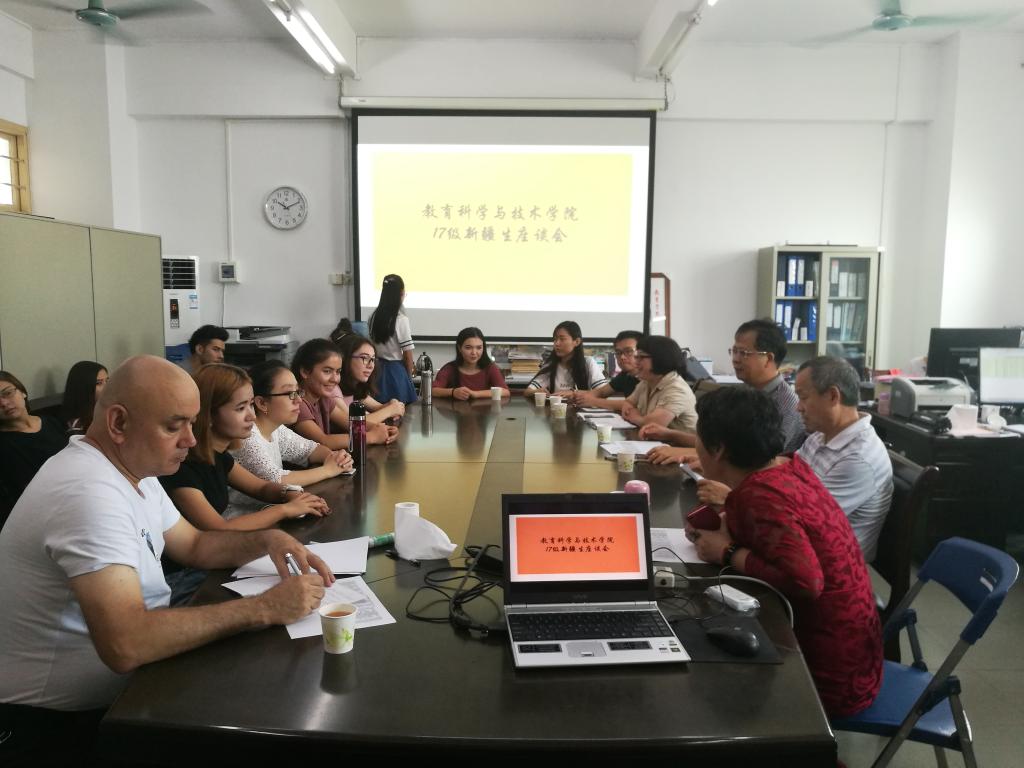 2017年9月28日教育科学与技术学院于一教1413召开17级新疆生座谈会,该座谈会主要对17级新疆生在学校的学习情况和生活状态进行了解和提出建议,同时传达学校对新疆生的关心以及今后在校的一些要求。