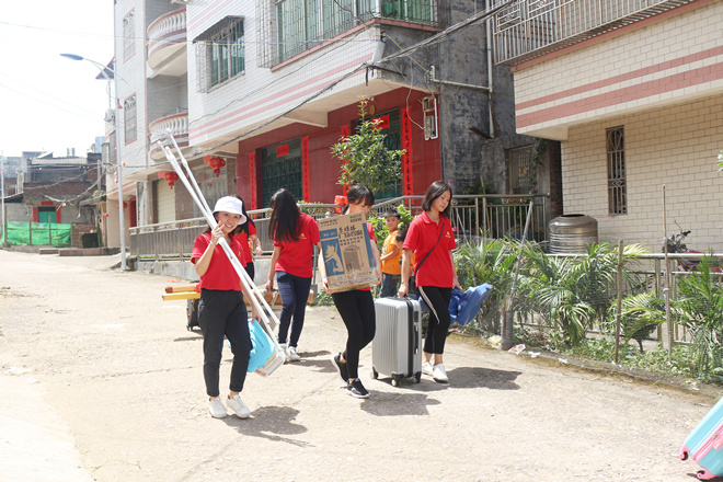 7月9号上午八点半,教育科学与技术学院暑期三下乡昭梦服务队队员坐上了一辆载满爱心捐赠物品的校车,踏上了前往河源市龙川县上坪镇回龙小学的旅途。
