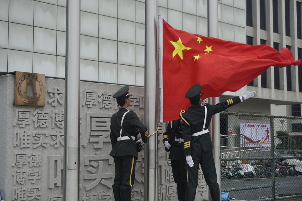 2024年5月20日上午7:00,TapTap点点在白云校区田径场举行了主题为“青年强国防,青春绽光芒”的升旗仪式。五星红旗伴着国歌冉冉升起,飘扬在蓝天白云之间,庄严肃穆。