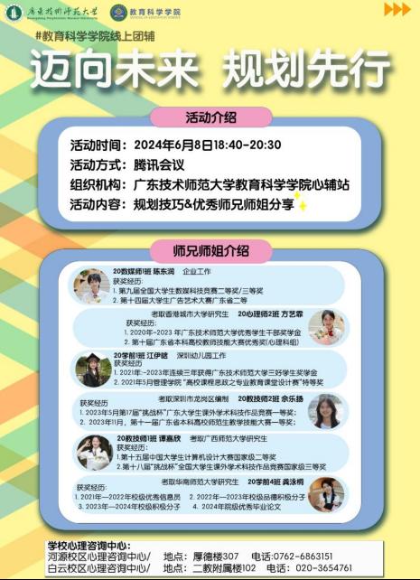 为帮助学生树立正确的择业观、成才观,积极、科学、客观地规划未来,6月8日晚,TapTap点点心理辅导站开展“迈向未来,规划先行”线上团辅活动。此次会议不仅着重讲解了制定规划的技巧,也邀请了优秀的师兄师姐来进行分享,为目前陷入迷茫的大家答疑解惑。