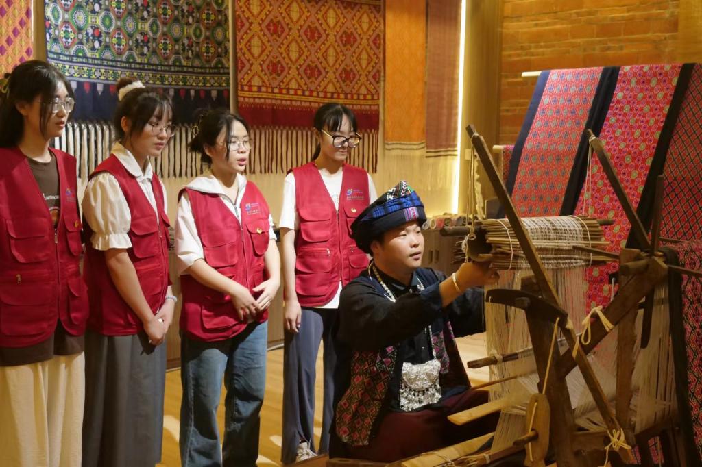 影像助力,让非遗“动起来”。影像作为保护非遗文化的重要工具,记录着非遗在传承过程中的故事,展现着非遗传承的技艺与智慧。在实地调研过程中,新媒兴镇实践团成员对壮瑶风采锦绣专业合作社社长冀麒宇及手工艺人钱金兰、杨莲香进行影像采访;用视频记录手工艺人织造壮锦的手艺、冀麒宇展示传统小木机具体用法;同时记录下冀麒宇建设壮瑶风采锦绣专业合作社间接带动村民实现家门口就业的累累硕果。