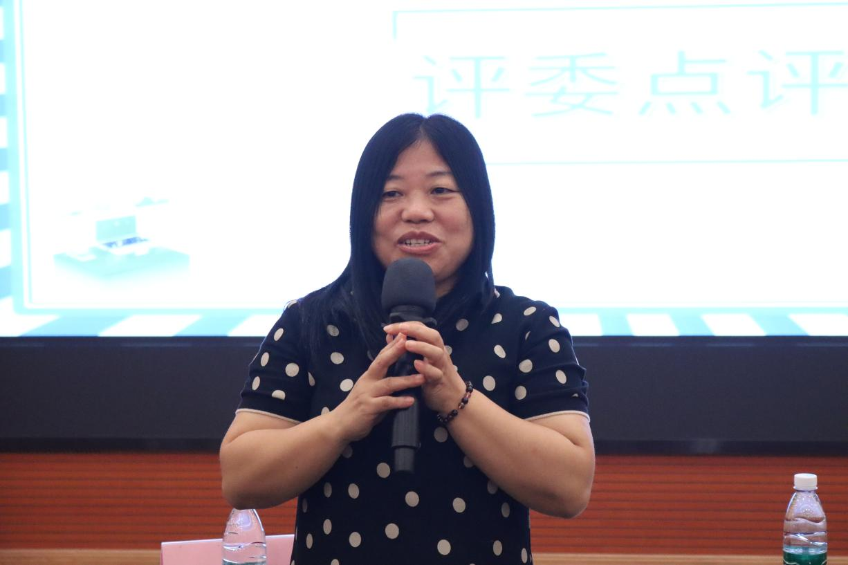在评委点评环节,陈雪梅老师对参赛作品和选手表现作了细致点评,她肯定了选手们在比赛中的精彩表现,从作品的成果展示中看到了选手们在产品设计方面所展现出的创新思维和实践能力,并鼓励同学们继续保持创新精神,在未来能够创造出更兼具技术深度和人文温度的数字化作品。