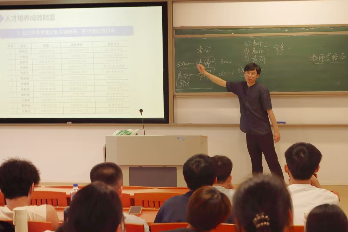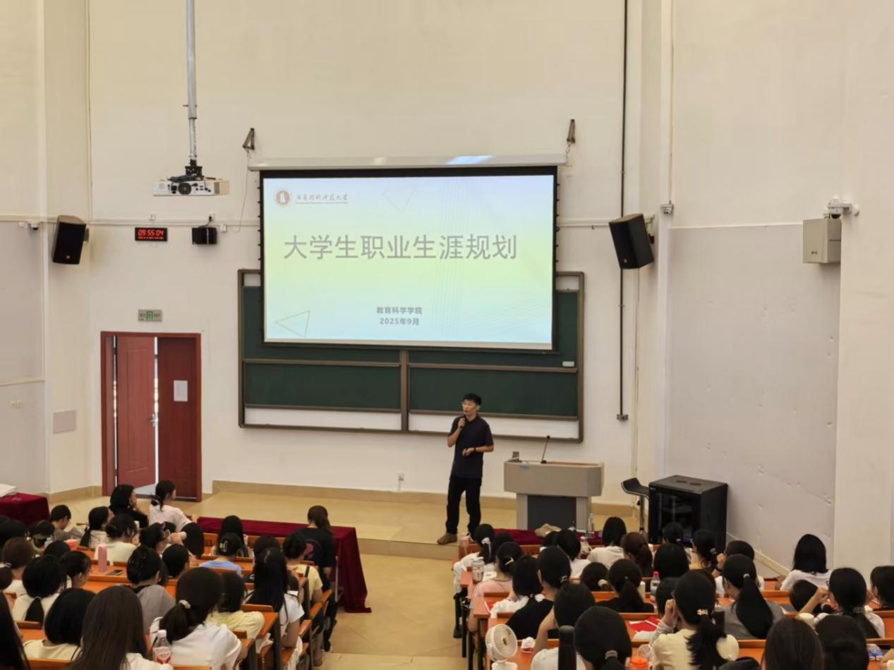为帮助新生树立学业目标、明确未来方向,学院系统开展专业与职业发展教育。9月13日上午,学院院长谢德新携专业负责人章玉祉、梁乐明两位专业负责人分专业为学前、应心、教技新生班授课,详细讲解专业发展前景、课程体系及学习要求,增强学生对专业的认同感和学习动力。