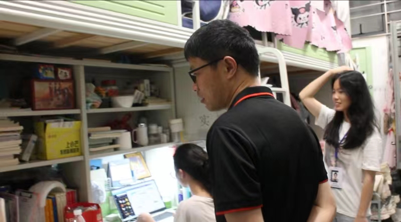 首先,熊华军院长深切关心学生的宿舍环境。熊院长走进宿舍,与同学们亲切交谈,详细了解学生的日常起居、宿舍设备的使用满意度和宿舍环境的建设等情况。院长表示,学生宿舍是学生生活的重要场所,学校致力于提供一个舒适、安全、便利的居住环境。他表示同学们能够积极反馈宿舍存在的问题,积极打造安全卫生的宿舍环境,共同将宿舍营造成温馨的家园。