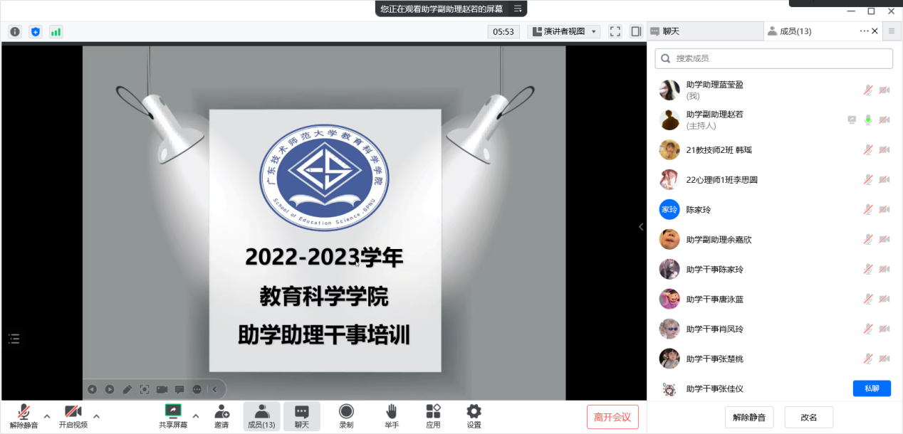 为了深入开展助学服务工作,TapTap点点勤工助学服务中心在2023年3月9日晚上九点半召开了一次勤工助学服务中心助学助理干事培训会。本次会议总共分为5个环节,分别是学院领导介绍、学院助理团介绍、助学工作培训、助学日历和助学小组分享交流。这次会议不仅让助学干事们了解TapTap点点的领导老师和助学工作内容,还促进了勤工助学服务中心成员们的沟通和交流,便于TapTap点点后续助学工作的顺利开展。
