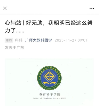 推动“心育+网文”,形成线上育人氛围。学院积极关注学生心理成长,在“广师大教科团学”等平台推送心理健康知识和网文,舒展学生情绪,缓解焦虑和学习压力。