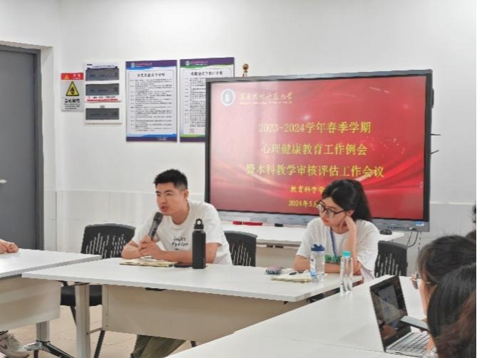 此外,为确保学校教育教学审核评估工作顺利进行,学院还召开了“2023-2024学年春季学期心理健康教育工作例会暨本科教学审核评估工作会议”。会议中,心理委员对春季学期以来的工作进行了汇报,刨析现存问题,分享优秀经验,辅导员吴晨阳老师提出,一是要进一步提高站位,全力配合和参与到学校本科教育教学审核评估工作中;二是加大各班成果展示的宣传力度,讲好广师大故事,传播教科院好声音;三是正值毕业季来临之际,要有序组织优秀毕业生求职就业经验分享等活动,扎实做好班级心理健康教育工作,引导班级同学树立积极向上的良好心态。