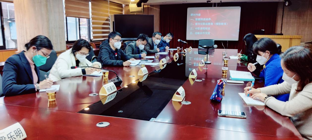 最后,双方就加强研究生校外实践导师的引进、深度参与广州市教育研究院的教研工作、帮扶中职院校发展、建设精品课程和开发中职人工智能课程等五个方面的合作进行深入探讨。