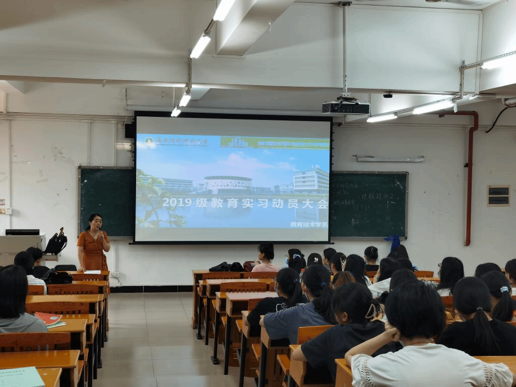 2022年6月28日星期二下午,我院教育技术学系2019级教育实习动员大会在白云校区三教208举行。会议由系主任赵玉老师主持,专业负责人周元春老师参会,19教技师1、2、3班共118名学生全部到会。