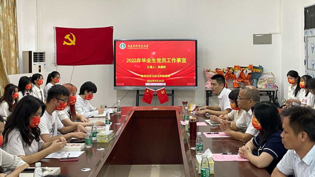 为进一步加强毕业生党员教育,跟进毕业生党员就业情况,打造毕业生党员交流平台,6月23日下午,教育科学与技术学院召开“永远跟党走,奋斗正青春”2022届毕业生党员座谈会。学院党委书记张旭日、副书记吴水爱、副院长陈丽君、副院长谢德新以及毕业生党员代表参加会议。会议由专职组织员吴晨阳主持。