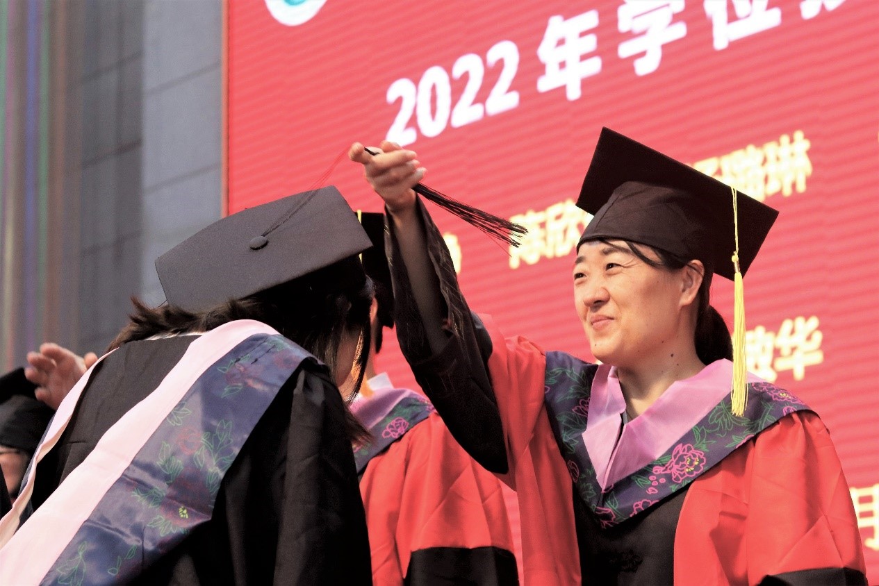 在学士学位授予仪式环节上,学院班子成员与系部中心主任全体成员为全体毕业生正冠拨穗并合影留念。所有的祝福、憧憬和期盼都定格在了这一个个美好的瞬间。