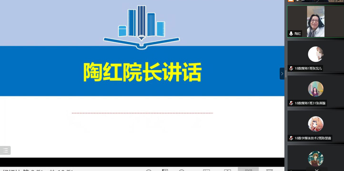 首先,陶红院长祝贺2018级学生们的实习之旅圆满结束,表达了对数字媒体技术专业实习指导老师们的辛劳付出、对学生们刻苦积极学习的感谢。师生们的努力,让数字媒体专业有了现在良好的发展。陶红院长表示,无论是教育实习还是专业实习,实习生都需要通过实际参与锻炼自身能力,在实习过程中,学生们的教学技能、专业技能、竞争力得以提高,也能在反思中不断改进提升。陶红院长还对2018级的学生们寄予期望,祝愿学生们越来越好,将来找到自己心仪的工作。