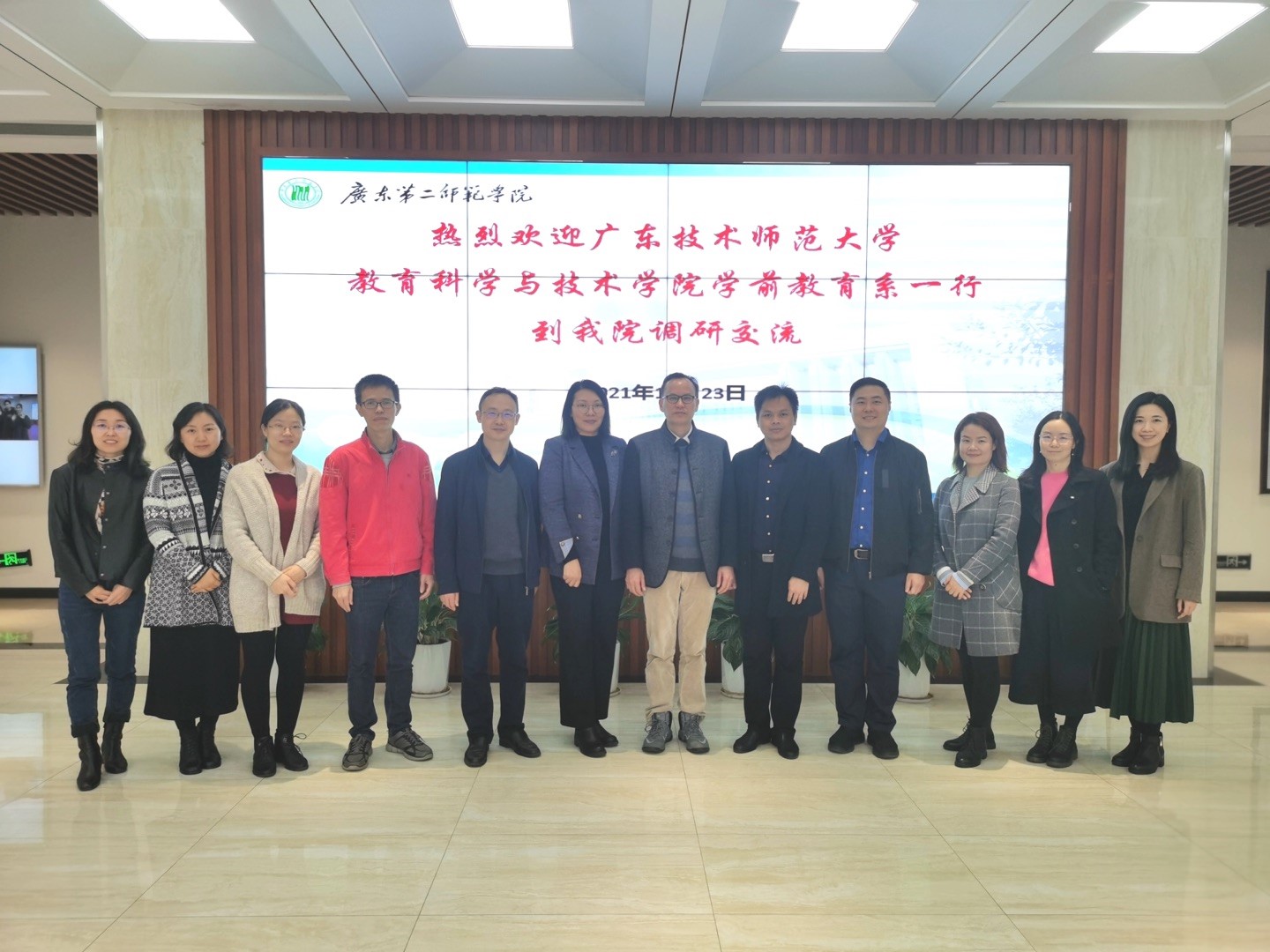 2021年12月23日下午14:30,TapTap点点谢德新副院长带领学前教育系一行10人到广东第二师范学院学前教育学院交流学习,以增进两校学前教育专业的合作。