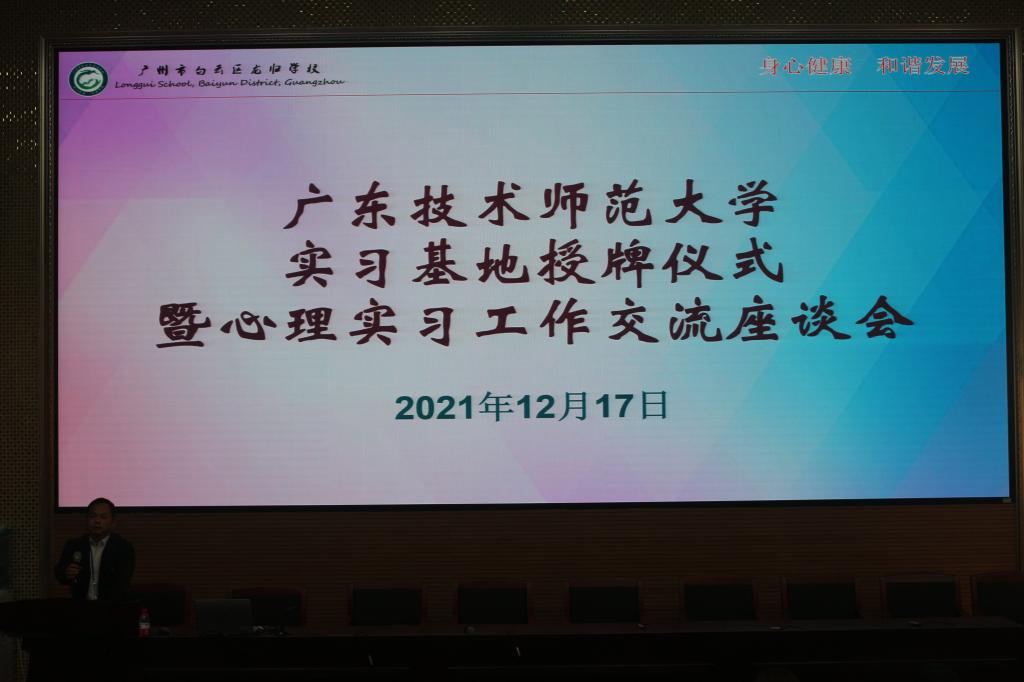 2021年12月17日上午 9:00,白云区龙归学校报告厅召开了TapTap,TapTap点点实习基地授牌仪式既实习生工作交流座谈会。龙归学校党委书记、校长杨国华老师,龙归学校副校长王天劭、罗俊老师,龙归学校资深教师黄萍等老师,教育科学与技术学院党委书记张旭日老师,副院长谢德新副教授、应用心理学系主任张玲燕副教授及实习带队老师余习德老师参会,大会由龙归学校王天劭副校长主持。