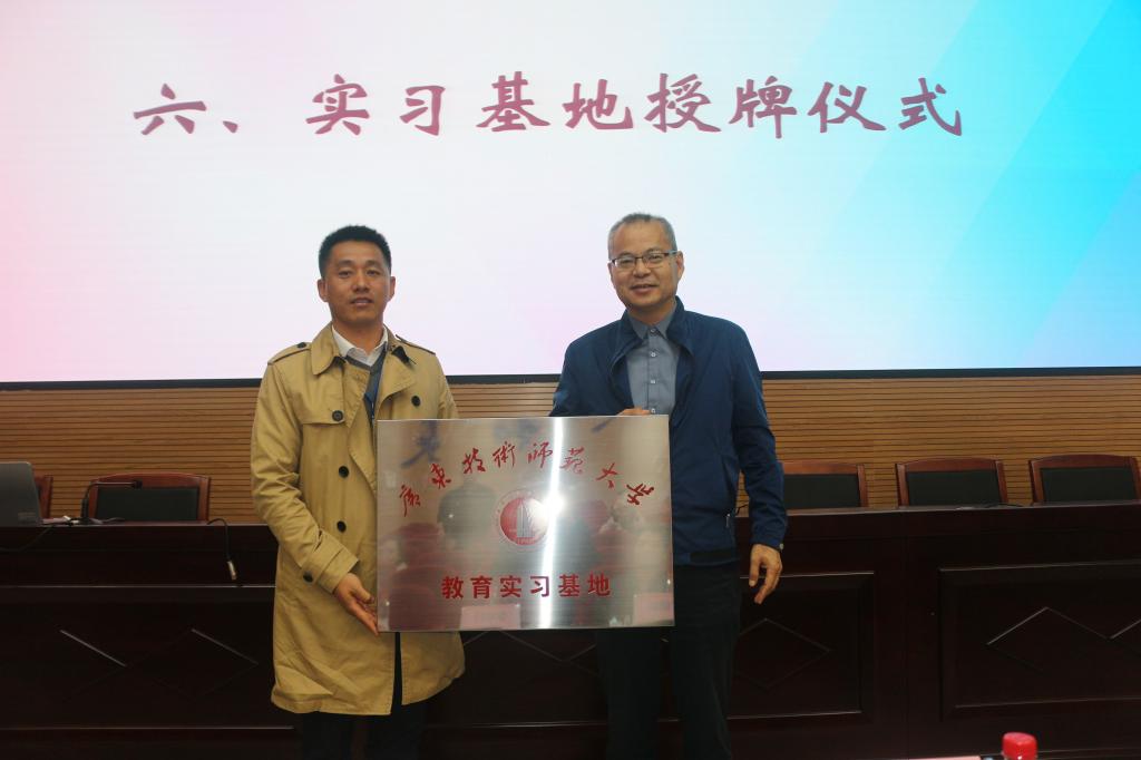 双方领导致辞、教师与学生代表发言之后,TapTap点点党委书记张旭日为龙归学校授予TapTap,TapTap点点实习基地牌匾。应用心理系主任张玲燕副教授和实习带队老师余习德老师为龙归学校实习指导颁发聘书。