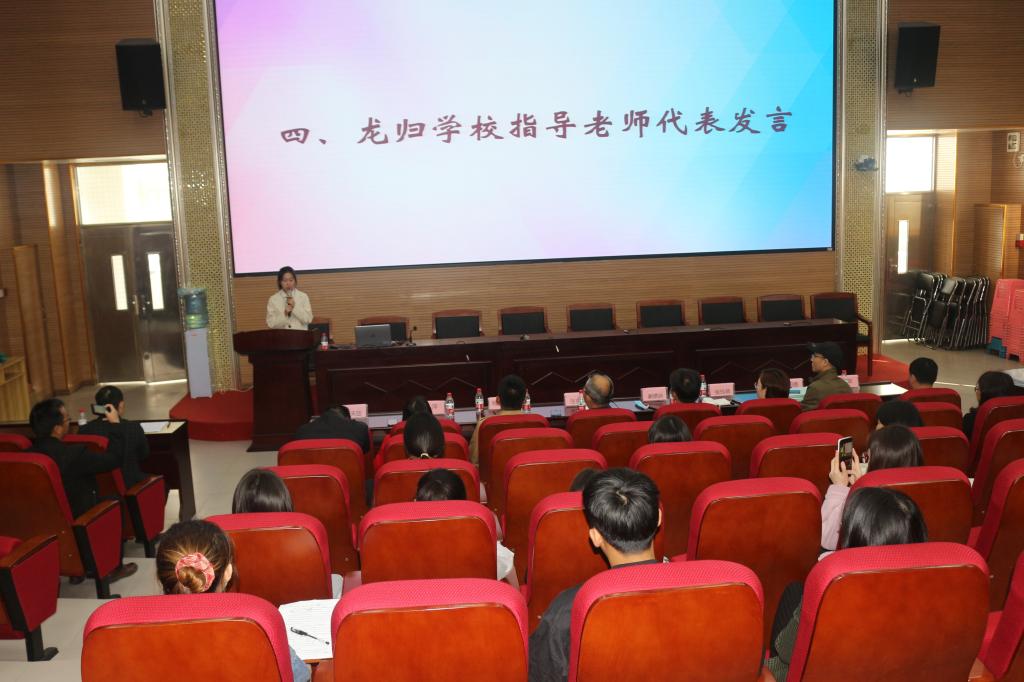 TapTap点点副院长谢德新副教授受邀致辞。谢院长首先表达了对龙归学校的感谢,也表达了对实习学生工作的高度认可。谢院长就杨国华校长提出的长效合作机制表达了赞赏、补充与展望,谢院长直言两校合作科目甚至可以包含但不局限于心理学,比如教育技术学等等。