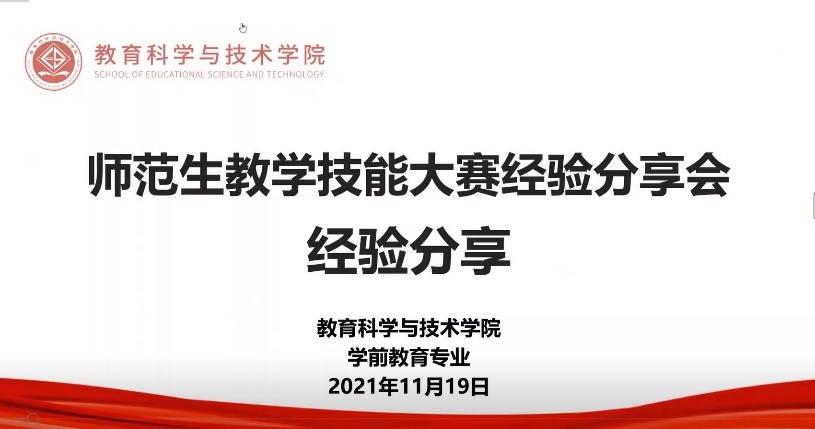 为了让20级学前教育专业的同学们更好地了解广东省师范生教学技能大赛的各项流程、明确自我方向和目标、掌握相关比赛技巧,于2021年11月19日晚上八点,教育科学与技术学院学前教育专业在腾讯会议上开展了一次线上师范生技能大赛交流分享会。