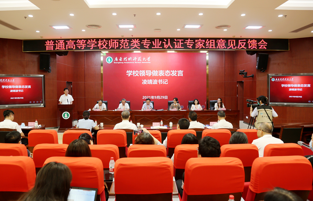 9月29日上午,普通高等学校师范类专业认证专家组意见反馈会在我校东校区第一教学楼208举行。专家组全体成员,学校党委书记凌靖波,校长骆少明,党委副书记李向明,副校长许玲、黄秋文,学校相关职能部门、相关学院负责人,参与认证的美术学院、教育科学与技术学院的党政班子成员、专业负责人;全校师范专业所在学院分管教学副院长及师范专业负责人等参加反馈会。会议由联合认证专家组组长王文新教授主持。