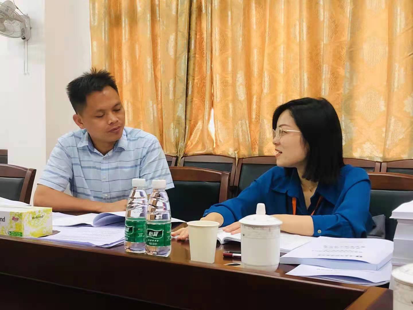 图为专业认证专家组肖幸查阅学院质量保障相关文档