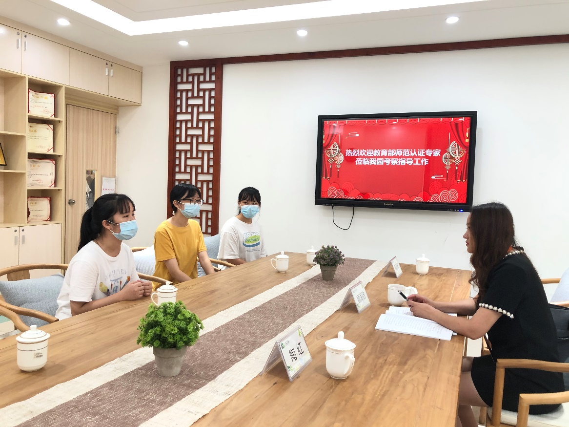 图为专业认证专家组顾海洁在天府幼儿园与教师代表座谈交流