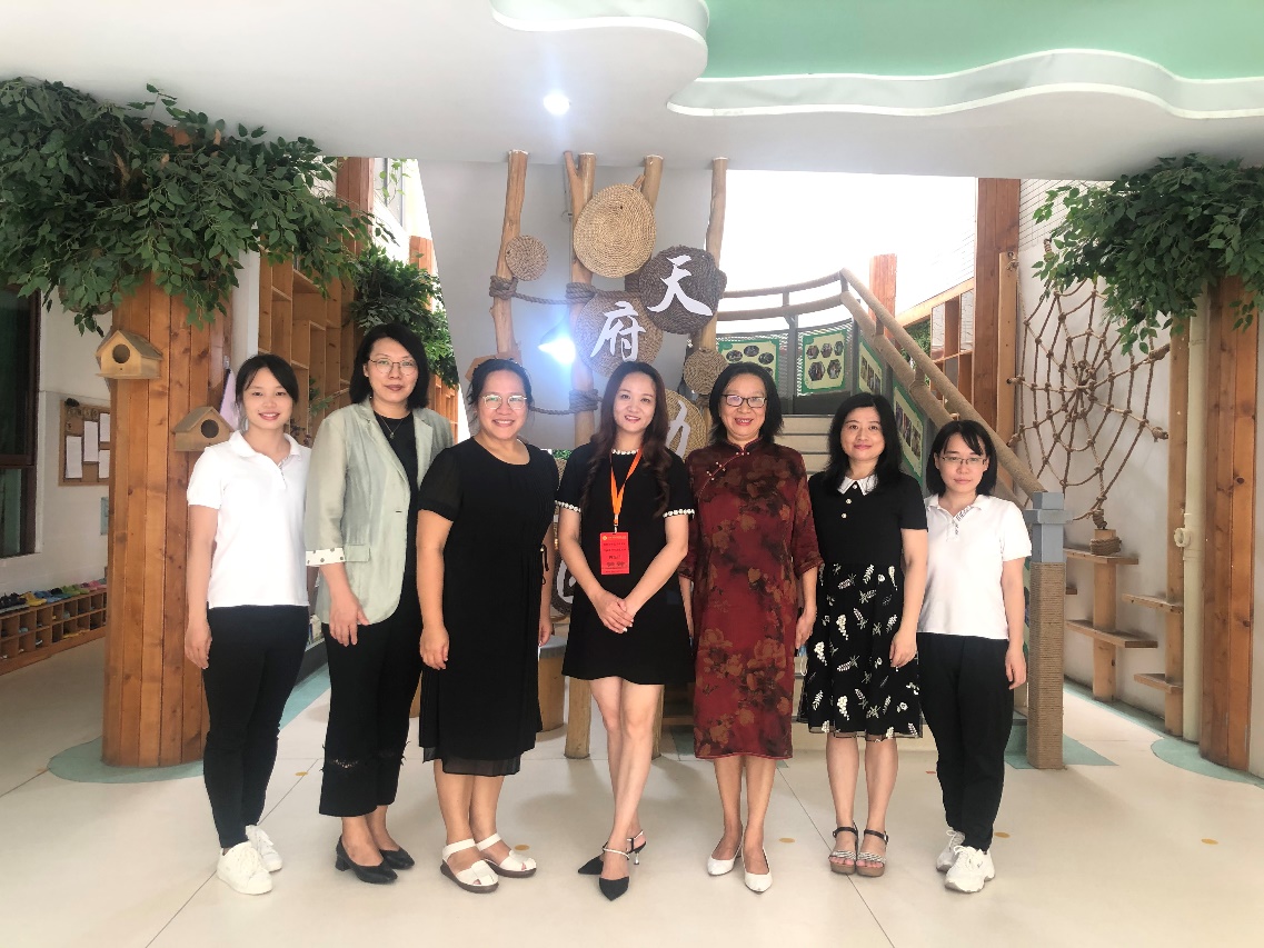 图为专业认证专家组顾海洁在天府幼儿园合影留念