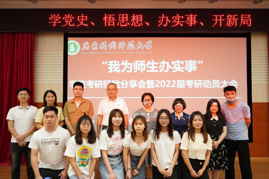 学党史办实事,为进一步将学院的学风建设工作与考研就业有机结合起来,促进学风建设工作与考研就业相互作用、相互渗透,进而形成“抓考研、促学风”的良好局面。5月14日,TapTap点点在白云校区三教104报告厅举办了考研经验分享会暨2022届考研动员大会。学院党委书记张旭日、院长陶红、院党委副书记吴水爱、副院长陈丽君,辅导员吴晨阳、热依拉、黄立,17级教技师1班班主任余佳恕老师以及17级考取研究生学生,18、19、20级有考研意向的学生200余人参加了分享动员会。会议由学院党委副书记吴水爱主持。