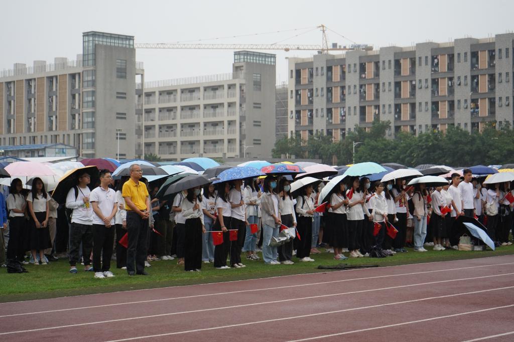 为进一步传承红色基因,着力推进党史学习教育,4月26日清晨,教育科学与技术学院迎着蒙蒙细雨,在白云校区运动场举行“升国旗、学党史、强信念、跟党走”主题教育活动。学院党委书记张旭日、党委副书记吴水爱、学生党支部书记、辅导员老师以及白云校区全体在校本科生、研究生参加升旗仪式,仪式由党委副书记吴水爱主持。