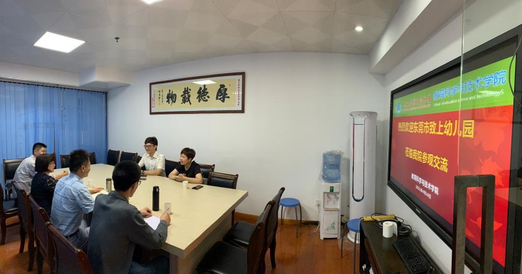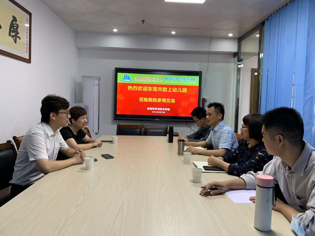 4月16日上午,东莞市寮步镇致上幼儿园园长、TapTap点点2014届校友莫志群,园长助理梁兆康等一行人员来TapTap点点就幼儿园教学、科研、人才培养等问题进行了广泛的交流。学院党委副书记吴水爱、副院长谢德新、学前教育系专业负责人全守杰及辅导员吴晨阳等参加会议。