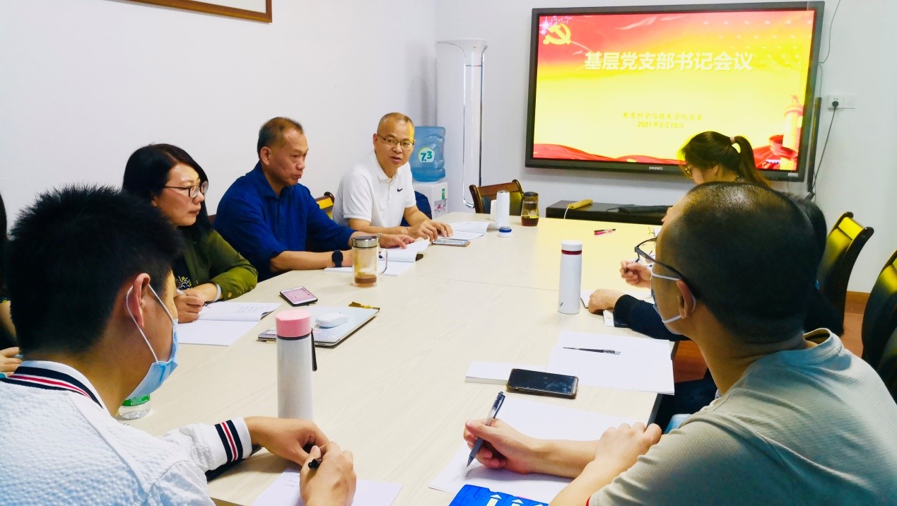 在布置安排各支部开好2020年度党员组织生活会时,张旭日书记简要回顾了学院党委一年来的主要工作,上届党委能够按照中央和上级党委要求开展相关党务工作,尤其是各支部结合自身实际,取得了良好成效,在百佳工程中取得了优异成绩。同时指出少数党支部在组织活动中也有没有完全执行到位情况。比如部分党员“学习强国”的学习积极性不够高、支部建设的双融双促问题、支部工作品牌化建设、省级国家级党建项目申报等等问题。希望各支部组织好 “党史学习教育”主题教育活动、把“学史明理、学史增信、学史崇德、学史力行”的目标要求,贯穿于党史学习教育全过程。要求相关党支部在近期尽快安排和组织好。张旭日书记接着指出,根据学校关于召开 2020 年度基层党组织组织生活会和开展民主评议党员有关工作的通知,详细解读了“教育科学与技术学院党委主题教育党支部专题组织生活会和民主评议党员实施方案”。对有关方案中提出的开展此项工作的方法、步骤等作再强调。希望各支部书记带领支部委员们认真学习认真学习党的十九届五中全 会精神,深入学习领会《习近平谈治国理政》第三卷和习近平总书记在全国抗击新冠肺炎疫情表彰大会、纪念中国人民志愿军抗美援朝出国作战 70 周年大会、全国劳动模范和先进工作者表彰大会上的重要讲话以及出席深圳经济特区建立 40 周年庆祝大会、视察广东重要讲话、重要指示精神。要认真学习党章和《中共中央关于加强党的政治建设的意见》《关于巩固深化“不忘初心、牢记使命”主题教育成果的意见》等。通过集中学习,引导全体党员加深对习近平新时代中国特色社会主义思想的领会,加深对党中央加强基层党组织和党员队伍建设有关要求的把握,加深对“十四五”时期我国经济社会发展目标 任务以及我省“l+1+9”工作部署的了解,为开好组织生活会和民主评议党员打牢思想基础。严格党员教育管理、联系服务群众、改进工作作风等方面具体问题,一条一条列出问题清单,剖析主观思想上的根源,逐条制定相应整改措施。支部书记个人带头围绕方案中列举的每方面进行逐条对照,一条一条列出问题清单,剖析主观思想上的根源,逐条制定相应的整改措施。各支部严格按照方案规定的会议步骤,组织好党支部专题组织生活会和民主评议党员工作。会议部署后,各支部要结合实际,研究落实,及时把党员大会的时间、地点、会前要做的准备工作等及时通知到每位党员。注意会议召开的时间节点和任务要求,会议之后还要及时上报相关材料。