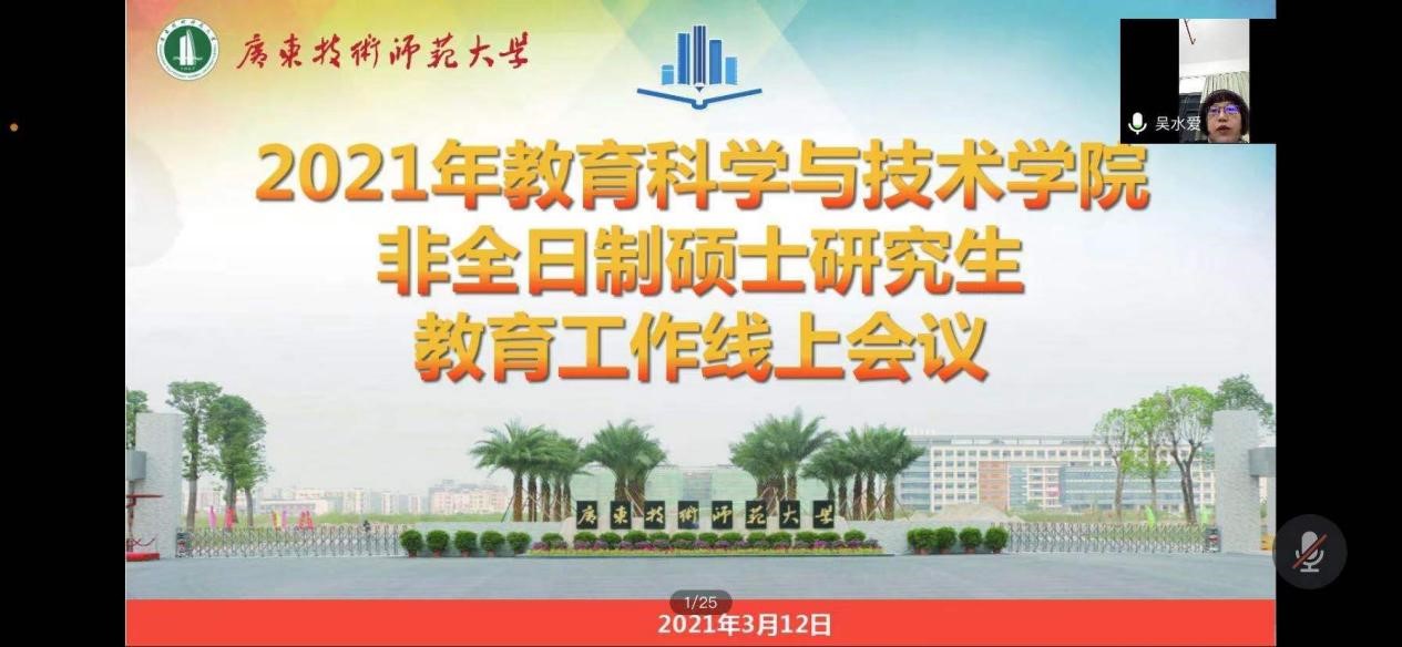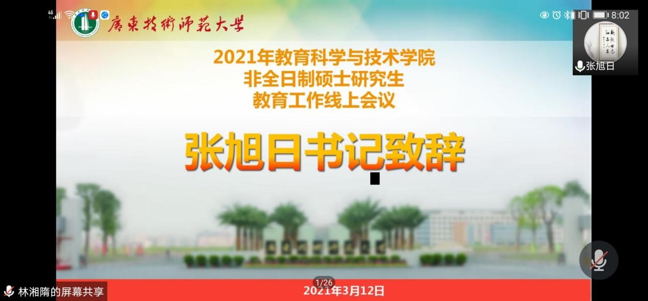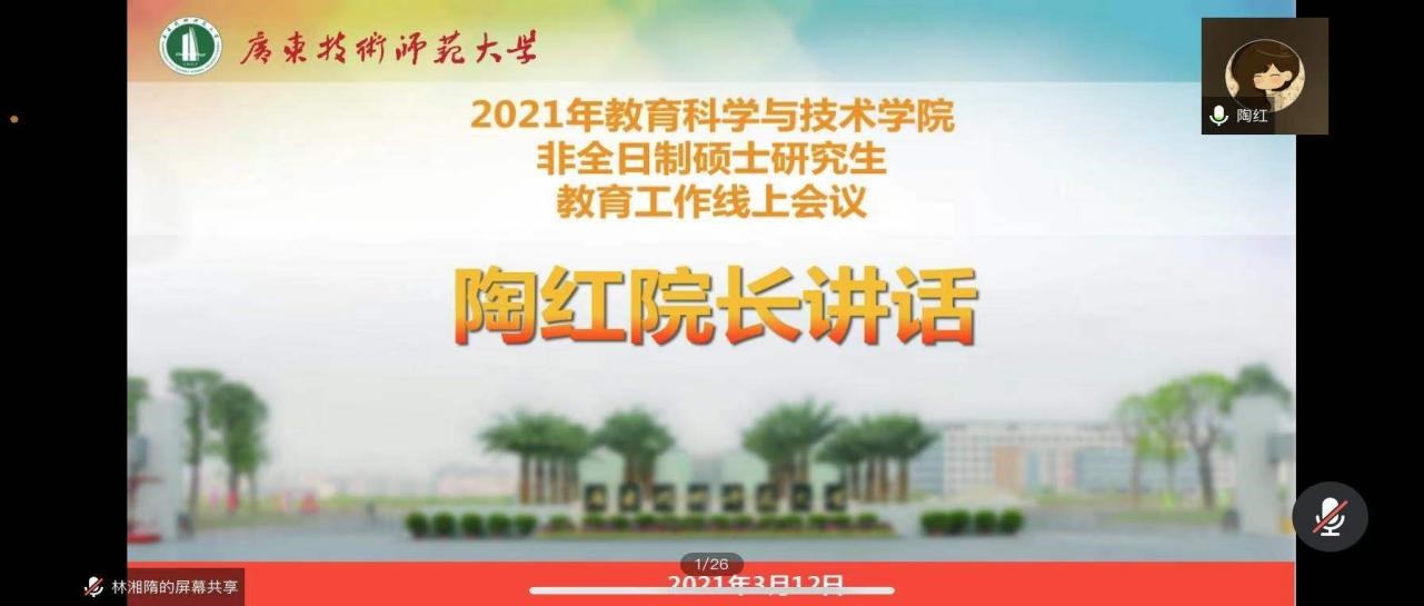 为进一步加强推动和完善TapTap点点非全日制硕士研究生的管理工作,提高非全日制硕士研究生的培养质量,教育科学与技术学院于3月12日在腾讯会议平台召开了2021年非全日制硕士研究生教育工作线上会议。学院党委书记张旭日,院长陶红,副院长陈丽君,研究生辅导员梁爽,研究生教学秘书刘品轩,部分导师以及全体非全日制硕士研究生参加会议,会议由学院党委副书记吴水爱主持。