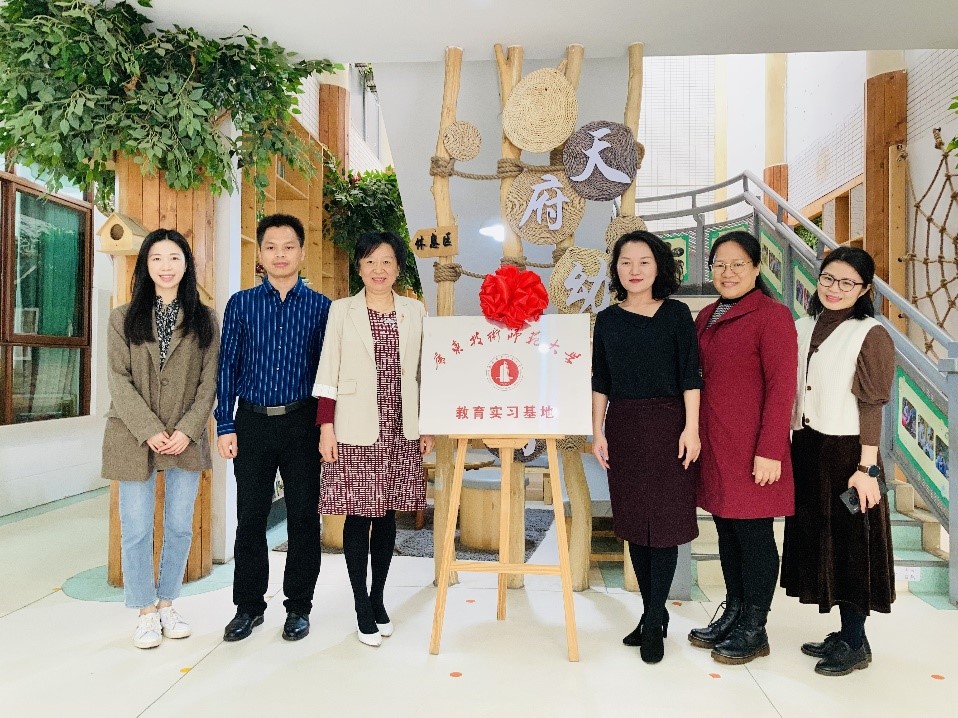 2021年3月11日上午,教育科学与技术学院陶红院长、谢德新副院长、冯嘉慧博士一行3人,赴广州市天河区天府幼儿园举行教育实习基地挂牌仪式暨人才培养座谈会。天府幼儿园陈丽园长、李卫平副园长、行政助理范萍萍、教研组长李彩君等相关负责人参加了挂牌仪式和座谈会。