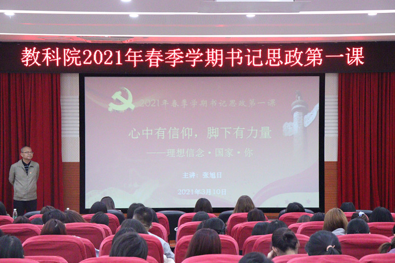3月10日,教育科学与技术学院党委书记张旭日于白云校区三教104报告厅举行了2021年春季学期书记思政第一课。学生党支部书记、专职辅导员以及全体学生党员、团学干事、各班班委、学生助理团队等200余名师生参加听讲。